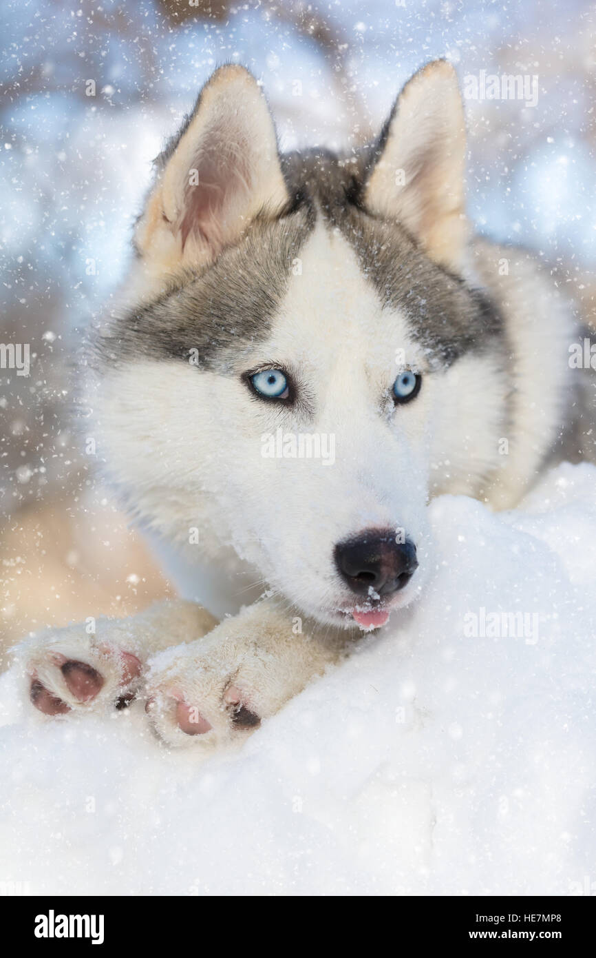 Find the perfect huskey puppy stock photo. Why do huskies have different colored eyes. Gorgeous siberian husky puppy with bright blue eyes laying in the grass. Husky puppies for sale via lancaster puppies.