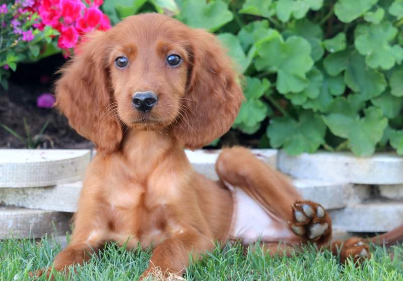 The irish setter is an active, aristocratic bird dog, rich red in color, substantial yet elegant in build. It is believed that today's irish setters are direct descendants from crossing irish water spaniels, pointers, gordon setters, and other spaniels. Because irish setter puppies in general are so obedient, you can live in an apartment as long as you make sure your dog gets enough exercise. What is important here is that each parent is a purebred dog of one of those breeds.